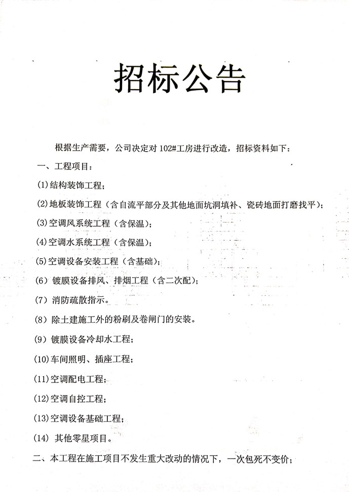 102#廠房改造招標公告