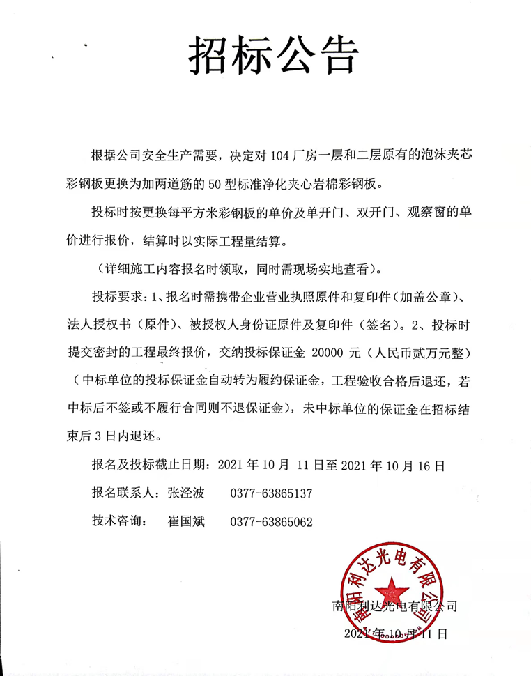 104廠房一層和二層更換彩鋼板改造工程招標(biāo)